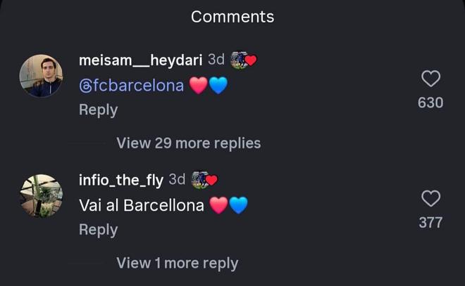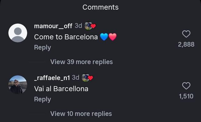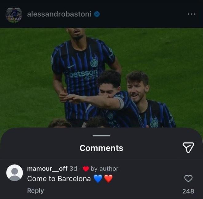 此前在国米击败科莫之后,巴斯托尼在社交媒体上晒出了自己的照片,3天前有一名球迷在他的动态下评论“来巴萨吧❤️❤️”,可以看到,巴斯托尼给这条动态点了赞。